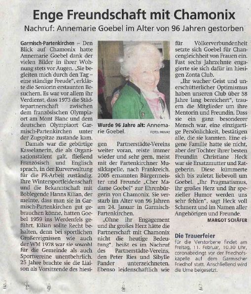 Der Zonta Club Garmisch-Partenkirchen trauert um sein ältestes Mitglied